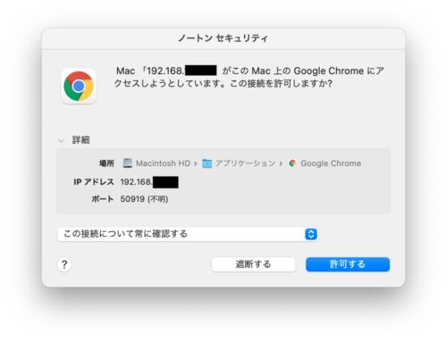 これはInfocom Advent Calendar 2021 24日目の記事です。 約1年前の下書きが残っていたのでそれを投稿します Macでノートンからこんなアラートがあがったのが事の始まり Mac「192.168.とあるが、そもそもMacはこのIPではないので誰なのか調べてみる