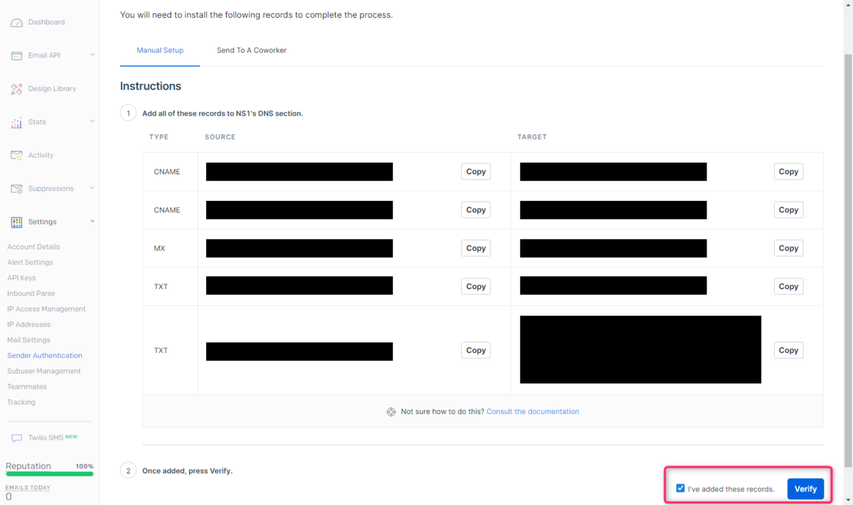 - 作成したDNSゾーンに対して、SendGridで表示されたレコードを登録する